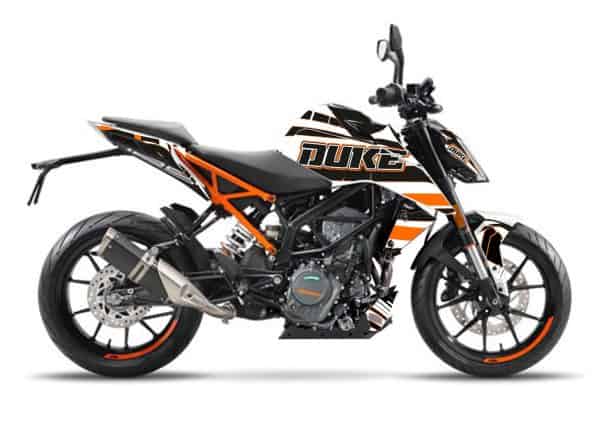 Our complete deco kit for KTM Duke 125 and 390 from 2017 to 2021 includes stickers for :