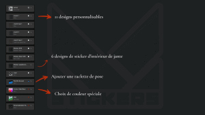 And finally, the last option, which will surely interest you if you are a competitor, you can replace the logos or text content with your own logos or text. You can thus add your Name, your number, or team logoFor social media page names, you don't need this option as we offer Customizable social media decals.