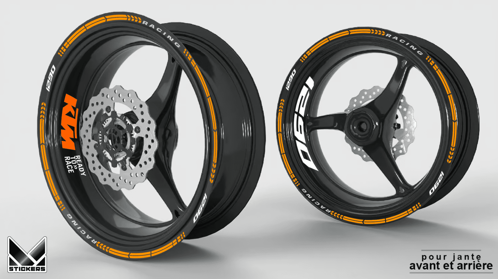 KTM 1290 orange and white wheel rim stickers (kit for 2 black wheel rims):
