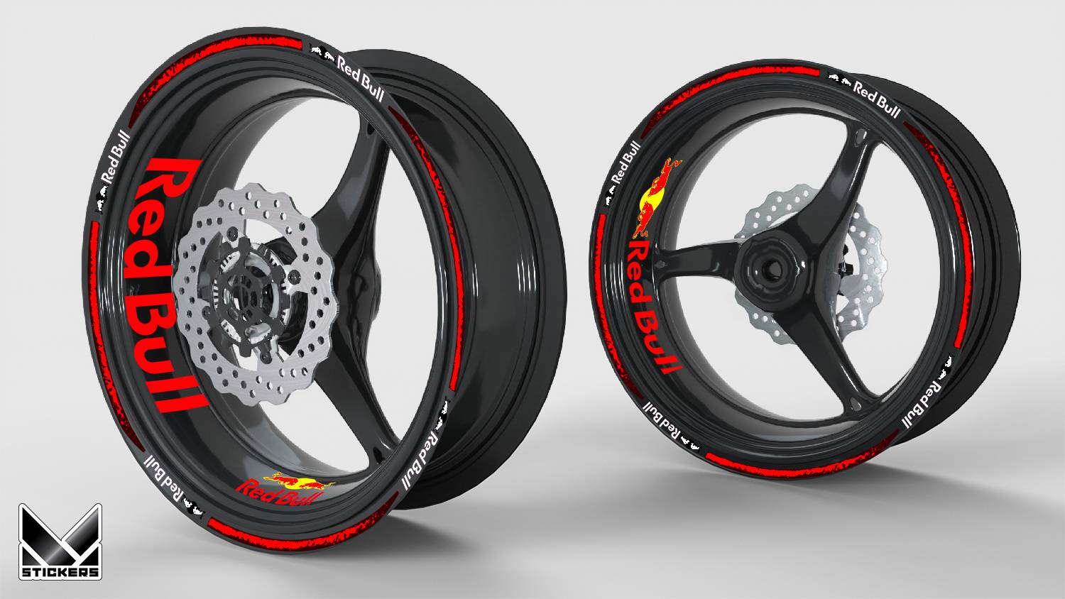 Sublimez votre moto en lui donnant un style moto GP avec notre kit stickers Redbull pour jantes de moto.