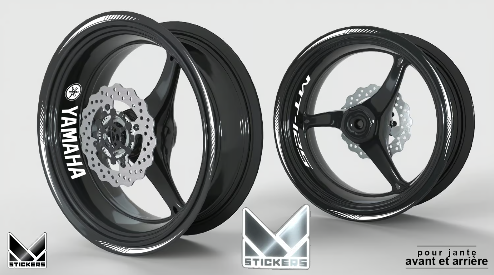 Le kit déco jantes moto 17 pouces Yamaha MT-125 pour les 2 jantes comprend :